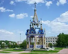 В 1839 году к 100-летнему юбилею предприятия построена деревянная часовня, которая существовала до 1888 года[1]. К 900-летию Крещения Руси, в 1888 году, настоятель храма Святой Троицы Владимир Кожевников обратился к работникам и хозяевам завода с предложением построить цельную металлическую часовню. Эта идея была поддержана, прихожане и заводчане стали жертвовать на строительство часовни деньги по 2 копейки с каждого заработанного рубля. В 1893 году часовня была построена. Стояла она на том месте, где сейчас находится детская поликлиника, на пересечении улиц Вершинина и Ленина[2]. Новая часовня представляла довольно редкое сооружение: она устроена «буквально из одного железа» и увенчана пятью зеркальными крестами; её стоимость обошлась около 5000 рублей[1].
