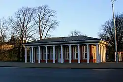К началу 1920-х годов каноны моды изменились, и швейцарский дизайн оказался устаревшим. В 1924 году Рижская дума направила в проектировочное бюро прибалтийско-немецкого архитектора Артура Мёдлингера (ученика Константина Пекшена) заказ на строительства нового киоска на остановке трамвая на перекрёстке бульвара Бастея и улицы Бривибас. Он создаёт проект сохранившегося до наших дней Колоннадного киоска в модном неоклассическом стиле — с виду он напоминал элегантный древнегреческий храм в миниатюре. Это архитектурное решение было необходимо, чтобы добиться гармонии с располагавшимся по соседству монументальным зданием Латвийской Национальной оперы. Старую деревянную постройку в швейцарском стиле сослали на новое место, в рижский микрорайон Гризинькалнс.