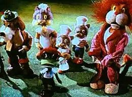 | Куклы и декорации выполнили | О. Масаинов, В. Гришин, Михаил Колтунов, С. Знаменская, М. Чеснокова, П. Лесин, С. Этлис, под руководством Романа Гурова |