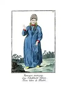 В то же время, часть чатов, под влиянием своих западных соседей барабинцев и кучумовой знати, c начала XVIII века принимала ислам. В XIX веке процесс исламизации стал более интенсивным с прибытием в Сибирь многочисленных переселенцев-мусульман из числа казанских татар и мишарей.[24] Религиозный выбор в значительной степени повлиял на направление ассимиляции: потомки принявших ислам, как правило, смешивались с татарами-мусульманами, а крещёные получали православные имена и фамилии, быстро утрачивали социально-культурные связи с другими татарами и растворялись в русском большинстве.[25]