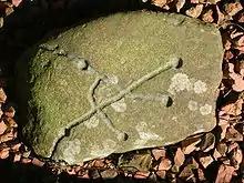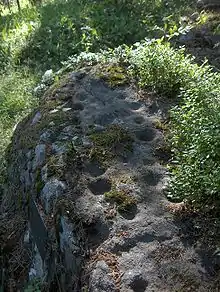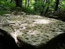 Чашечный камень с двумя лунками в урочище Три дуба. Западный Кавказ