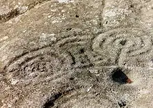 Иногда углубление окружено концентрическими кругами (англ. cup-and-ring mark). Круги могут быть разделены радиальными линиями или иметь жёлоб, отходящий от центра. Такие изображения распространёны главным образом в Атлантической Европе (северная Англия, Шотландия[1], Ирландия, Бретань, Галисия (северо-запад Испании)[2]), а также в Средиземноморской Европе (северо-запад Италии, Фессалия, центральная Греция, Швейцария).
