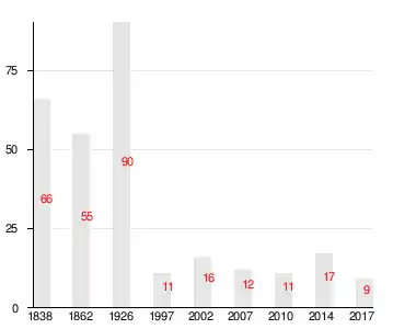 | 1838 | 1862 | 1926 | 1997 | 2007[21] | 2010[22] | 2014[23] |
