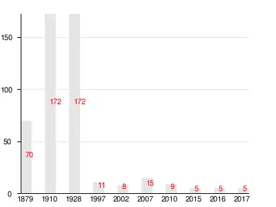 Число жителей по семейным спискам 1879 г.: 37 м. п., 33 ж. п.; по приходским сведениям 1879 г.: 47 м. п., 42 ж. п.[2]