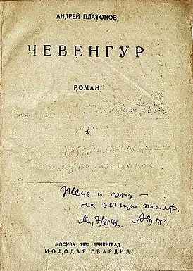 «Чевенгу́р» — утопический социально-философский роман русского писателя Андрея Платонова. Самое пространное и, по мнению многих литературоведов, самое значимое его сочинение; «единственный завершённый роман в творчестве Платонова»[1]. Написан в 1926—1928 или 1927—1928 годах; первая редакция именовалась «Строители весны» (1927).