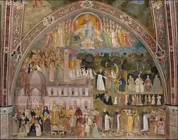 ![]() Микеле Чезена. Фрагмент фрески «Церковь Воинствующая и Церковь Торжествующая», Андреа да Фиренце в церкви Санта-Мария-Новелла во Флоренции (Италия), ок. 1365 | |