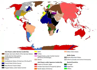 После войны Черчилль всё ещё правит Великобританией. Чан Кайши, победив Мао Цзэдуна в гражданской войне, возглавил Китай и установил тесные торговые и политические связи с США.