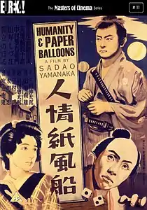 «Человечность и бумажные шары» (яп. 人情紙風船: ниндзё ками-фусэн; англ. Humanity and Paper Balloons) — японский чёрно-белый фильм-драма с элементами комедии, поставленный режиссёром Садао Яманакой в 1937 году. Широко расцененный как величайшее достижение режиссёра, к сожалению, был его последним фильмом, и только одним из трёх, что сохранились до сегодняшнего дня. Сценарист Синтаро Мимура обработал для фильма пьесу Мокуами Каватакэ, написанную для Кабуки и известную под кратким названием «Парикмахер Синдза». Сценарист, добавив нового героя — ронина Матадзюро, развил действие в оптимистическом и романтическом духе. Но Яманака изменил настрой фильма на весьма пессимистический, что наверняка было ответом на нагнетание в Японии фашизма. Верный своему стремлению реформировать исторический жанр, Яманака осовременивает персонажей. Так, городской самурай Мори по своим повадкам больше похож на босса якудза[1]. Режиссёр в этом фильме отказывается от романтизации периода Эдо и образа самурая. Здесь не прославляется героизм самураев, не показываются славные сцены боёв на мечах, здесь показаны простые люди, пытающиеся как-то выжить в безжалостном к ним мире. В городе правят преступники, которые работают рука об руку с богатыми торговцами и нечестными чиновниками. Самураи высокомерны и эгоистичны. Жадность, похоть и алкоголь доминируют в столице. Самые благородные персонажи, такие как жена обнищавшего самурая (название фильма относится к тому, что она изготавливает бумажные шарики), переживают худшее время. И когда некоторые персонажи пытаются бороться с этой коррумпированной системой, они оказываются раздавленными[2]. Фильм начинается и заканчивается самоубийством, что является признанием сокрушительной безнадежности феодального общества, в котором сама человечность столь же хрупка, преходящая и часто упускается из виду, как бумажный шарик.