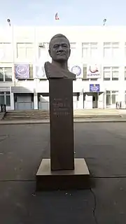 - В г. Байконур: бюст во дворе Международной космической школы имени академика В. Н. Челомея[8].