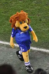 Лев с посохом в круге использовался с 1953 по 1986 год. Эта эмблема произошла от гражданского герба района Челси, откуда произошла команда[69]. Изображение стоящего льва клуб получил от президента клуба, лорда Кадогана. А посох от Аббата Вестминстера, исполнявшего свои обязанности в том числе и в Челси. Также на эмблеме есть розы, которые обозначали Англию и футбольные мячи[70].