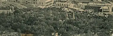 В начале 1910-х на месте мусульманской части кладбища было принято решение построить здание для мусульманского духовного училища «Саадет». Архитектор Зивер-бек Ахмедбеков подготовил проект, и в одну из пятниц народ собрался на кладбище. Ахунд прочитал молитву, после чего родные и близкие покойных перенесли останки на Нагорное кладбище, пустые могилы сровняли с землёй[9], и 23 декабря 1912 года был заложен фундамент здания училища[10].