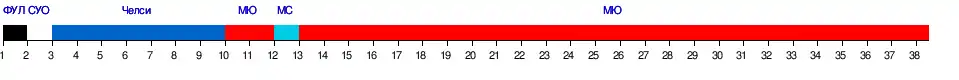 | Челси | 2:1 | 8:0 | 1:0 | 2:0 | 0:1 | 1:1 | 0:0 | 2:3 | 4:1 | 2:0 | 4:2 | 2:1 | 2:2 | 1:0 | 2:0 | 2:2 | 4:1 | 0:0 | 2:1 | |