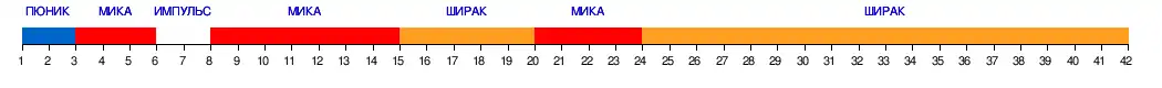 | Команда | ШИР | МИК | ГАН | ПЮН | ИМП | УЛИ | АРА | БАН | ШИР | МИК | ГАН | ПЮН | ИМП | УЛИ | АРА | БАН | ШИР | МИК | ГАН | ПЮН | ИМП | УЛИ | АРА | БАН | |
