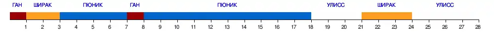 | Команда | АЛА | АРА | БАН | ГАН | МИК | ПЮН | УЛИ | ШИР | АЛА | АРА | БАН | ГАН | МИК | ПЮН | УЛИ | ШИР | |
