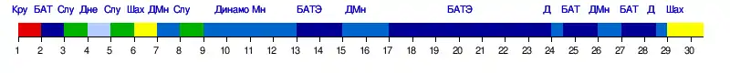 | Дома \ На выезде | БАТ | ВИТ | ГОМ | ГОР | ДБР | ДМН | ДНЕ | ИСЛ | КРУ | МИН | НЕМ | НАФ | СЛА | СЛУ | ТОР | ШАХ |