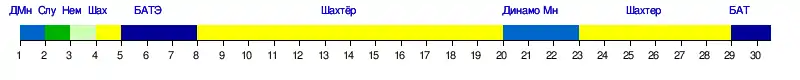 | Динамо Минск | 0:1 | 1:3 | 1:0 | 4:2 | 1:0 | — | 2:1 | 1:0 | 1:0 | 1:0 | 1:0 | 1:0 | 0:0 | 2:0 | 1:0 | 2:2 |