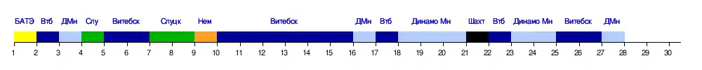 | Витебск | 0:1 | — | 1:0 | 1:0 | 0:1 | 0:1 | 3:1 | 2:0 | 2:0 | 1:0 | 5:1 | 2:0 | 4:0 | 2:0 | 2:0 | 2:1 |