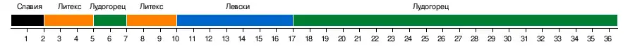 | Лудогорец | 9 | 5 | 4 | 4 | 3 | 1 | 1 | 2 | 2 | 2 | 2 | 3 | 2 | 3 | 4 | 3 | 3 | 1 | 1 | 1 | ||||||||||||||||