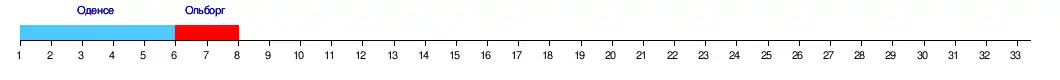 | Оденсе | 2:1 | 1:4 | 2:0 | 2:1 | 3:1 | 2:4 | ||||||