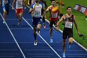 Финал в эстафете 4×400 метров у мужчин состоялся 11 августа 2018 года[3]. Со второго этапа лидерство захватила сборная Испании, и ей удавалось сохранять первое место вплоть до финишной прямой. На заключительном этапе за испанцев бежал Бруно Ортелано: после быстрого начала он заметно сдал на финише и пропустил вперёд бельгийца Кевина Борле и британца Мартин Руни. Сборная Бельгии, в составе которой выступали три брата Борле, в третий раз за последние четыре чемпионата Европы выиграла золотые медали. Команда Испании оказалась на подиуме в эстафете 4×400 метров впервые с 1998 года[4].