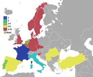 Нидерланды: Амстердам Арена (Амстердам), Фейеноорд (Роттердам), Филипс (Эйндховен), Гелредом (Арнем) Бельгия: Стадион короля Бодуэна (Брюссель), Ян Брейдел (Брюгге), Морис Дюфран (Льеж), Стад дю Пеи де Шарлеруа (Шарлеруа) |