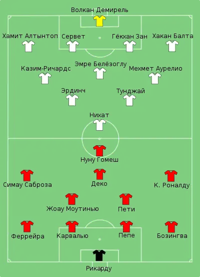 Португалия до 2008-го года четырежды принимала участие на европейских первенствах. В розыгрышах 1984 и 1996 годов они выходили из группы, но терпели поражения в первых же матчах плей-офф, соответственно, от Франции и Чехии. Следующий розыгрыш 2000-го года пришелся на пору расцвета так называемого «золотого поколения» португальского футбола. В групповом этапе были одержаны три победы (над Англией, Румынией и Германией), причём в последнем, малозначащем для португальцев, туре полурезервным составом разгромлен действующий чемпион – сборная Германии – 3:0. Однако в полуфинале побеждает Франция: на последних минутах дополнительного времени Абел Шавьер кончиками пальцев задевает уходящий за лицевую линию, главный судья советуется с боковым и указывает на точку (Зидан точен). На Евро-2004 Португалия страна-организатор и явный фаворит. И португальцы потерпели два поражения: в матче открытия и в финале. Оба раза «злым гением» этой сборной выступила Греция – команда-сенсация того розыгрыша.