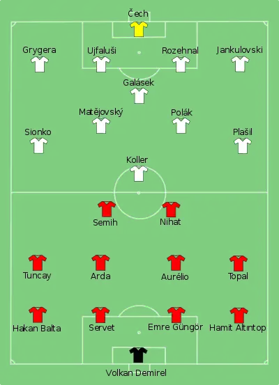 Турция, как и Швейцария, дважды прежде принимала участие в финальных турнирах чемпионатов Европы. И также дебютировала в розыгрыше 1996-го, крайне неудачно: ни одного забитого мяча, последнее место в группе (правда, в то время уже сам выход из отборочного турнира в Турции рассматривался как успех). На Евро-2000 турки выступили более успешно: 4 очка в группе, однако, поражение в четвертьфинале от Португалии.