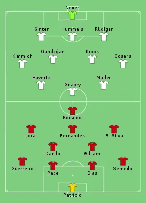 - Tactical Line-ups – Portugal v Germany. UEFA.com. УЕФА (19 июня 2021). Дата обращения: 19 июня 2021.