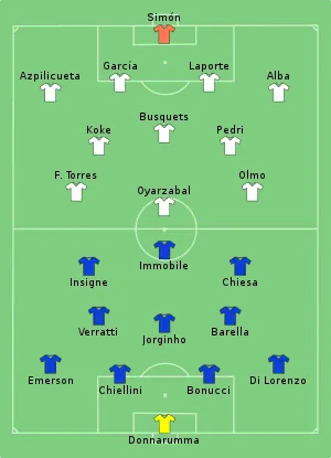 Победу одержала сборная Италии, которая в серии послематчевых пенальти со счётом 3:2 обыграал сборную Англии в финальном матче.