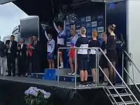 Подиум мужской индивидуальной гонки: Мацей Боднар (2), Виктор Кампенартс (1), Райан Маллен (3)