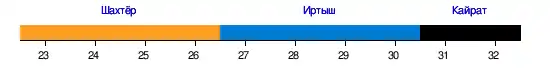 | 9 | Атырау (мол.) | 22 | 6 | 6 | 10 | 39 − 47 | −8 | 24 |