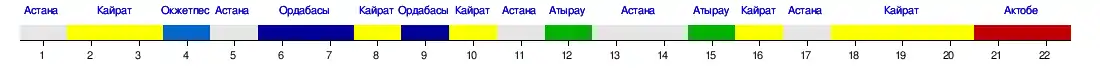 | Астана | 1 | 2 | 2 | 2 | 2 | 2 | 2 | 1 | 1 | 1 |