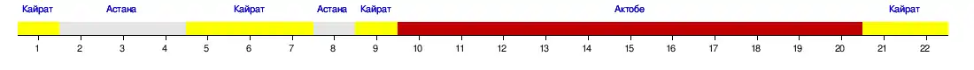 | Атырау | 4 | 4 | 5 | 6 | 6 | 6 | 6 | 6 | 6 | 5 |