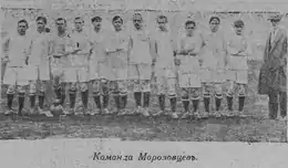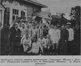 | «Сокольнический» КЛ: Дуров - Гладкий, Павлов - Бункин, Ливотов, В.Ратов - Багров, Макаров, Феофанов, Воробьев, Беренштейн ОЛЛС: Обухов - М.Исаев, К.Шмидт - Годбод, Н.Иванов, Лауденбах - Вл.Гроссе-I, А.Канунников, Вен.Гроссе-II, Н.Майтов, Жибоедов |