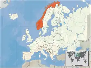 Расположение Норвегии в Европе