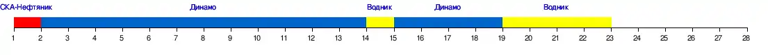 | СКА-Нефтяник | 2:10 | — | 4:6 | 6:0 | 7:3 | 7:6 | 10:2 | 10:1 | 14:2 | 11:4 | 14:4 | 13:1 | 10:3 | |