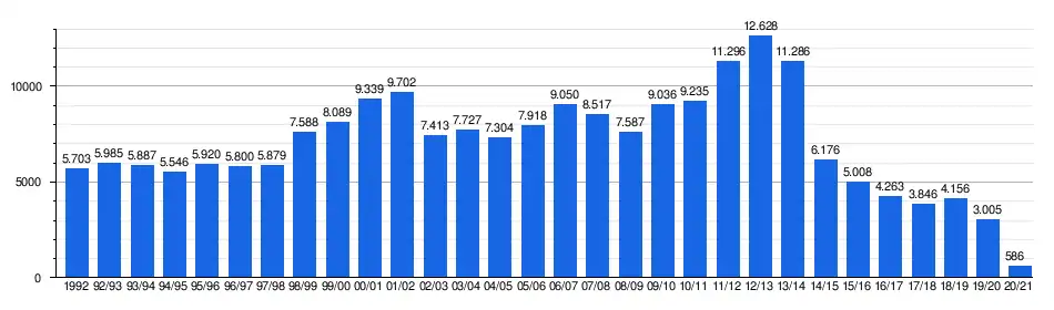 С сезона 2020/21 число команд-участников чемпионата возросло до 14.
