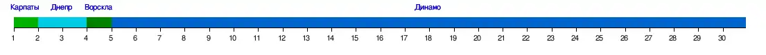 | 3 | «Ворскла» | 4:3 | 1:1 | 0:0 | 0:0 | 1:0 | 2:1 | 3:0 | 2:1 | 3:0 | 1:0 | 4:0 | 2:0 | 2:0 | 2:0 | 3:0 | |