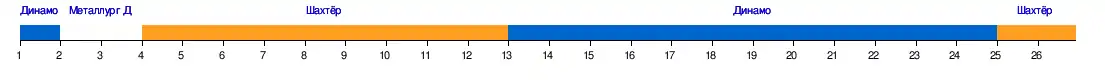 | 3 | «Металлург» Д | 0:1 | 0:0 | 1:1 | 5:0 | 2:0 | 4:1 | 0:0 | 3:2 | 2:1 | 0:0 | 2:1 | 1:0 | 1:1 | |