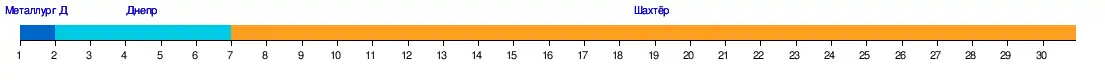 | 2. «Ворскла» | 2:1 | 0:1 | 2:1 | 2:0 | 1:1 | 0:0 | 2:1 | 1:1 | 2:0 | 2:1 | 1:1 | 0:0 | 1:1 | 2:0 | 0:1 | |