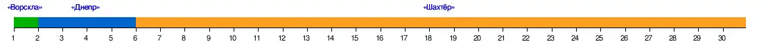| Команда | ШАХ | ДИН | МТХ | ДНЕ | КАР | ТАВ | АРС | МТД | МТЗ | ОБО | ВОР | ИЛЬ | ЗАР | КРИ | СЕВ | ВОЛ |