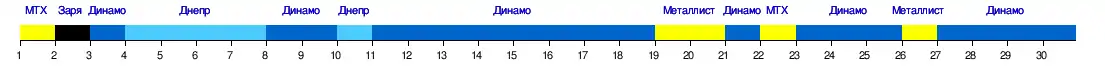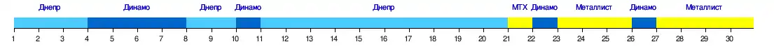 | 4 | «Днепр» | 1:1 | 2:0 | 2:1 | X | 2:0 | 1:0 | 1:2 | 3:0 | 7:0 | 1:1 | 3:1 | 1:2 | 2:1 | 2:0 | 4:1 | 3:0 |
