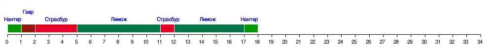 | Лимож | 2 | 3 | 2 | 3 | 2 | 1 | 1 | 1 | 1 | 1 | 1 | 2 | 1 | 1 | 1 | 1 | 1 | 3 | - | - | - | - | - | - | - | - | - | - | - | - | - | - | - | - |