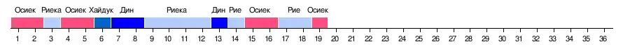 | 3 | Риека | 19 | 11 | 4 | 4 | 41 | 27 | +14 | 37 | |