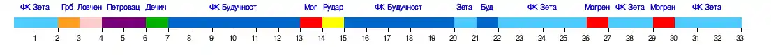 | 5. ФК Зета | 0:1 8:3 | 0:0 0:0 | 1:0 | 2:1 | 2:0 4:1 | 1:0 1:1 | 1:0 2:1 | 1:0 | 4:1 | 0:1 2:2 | 1:0 | |