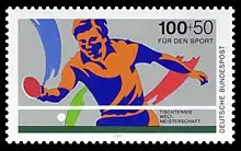 Почтовая марка выпущенная в честь Чемпионат мира по настольному теннису 1989