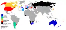 | - | 3 (1987, 1999, 2011) | 1 (1995) | 2 (2003, 2007) | 3 (1991, 2015, 2019) | 9 | |