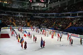 ![]() Парад флагов стран-участниц чемпионата на торжественной церемонии открытия турнира | |
