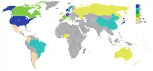 | Страна | Чемпионы | 2-е место | 3-е место | 4-е место | Прочее |