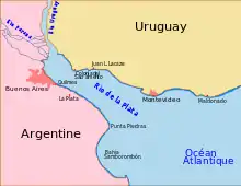 | 34°53′40″ ю. ш. 56°09′10″ з. д. | 34°54′04″ ю. ш. 56°09′32″ з. д. | 34°54′18″ ю. ш. 56°09′22″ з. д. | |